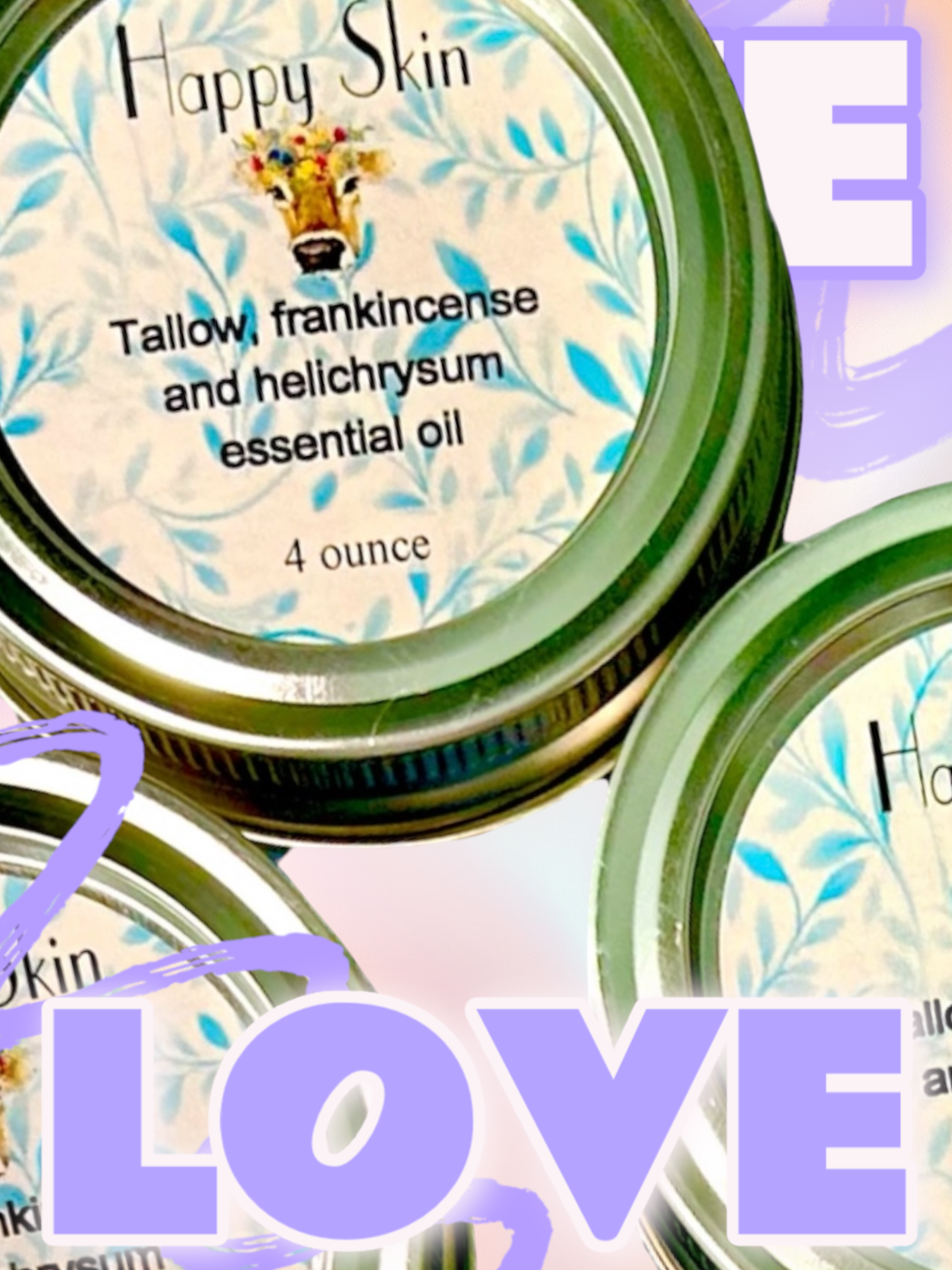 Tallow balm, 4 oz glass, Frankincense and Helichrysum